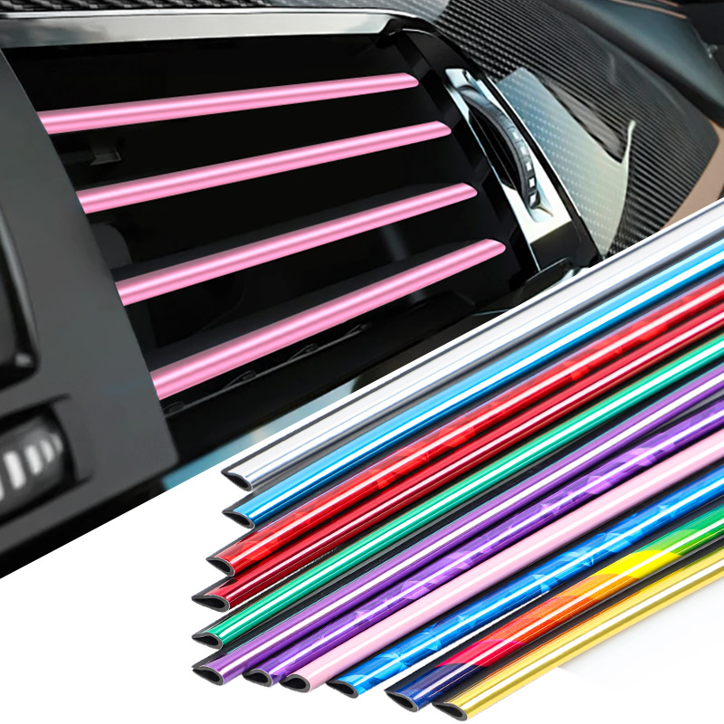 車のエアベント装飾ストリップ、ミッドグリッドクリップストリップ、U字型電気メッキブライトストリップ、エアコンクロームメッキカラーインテリア改造用品