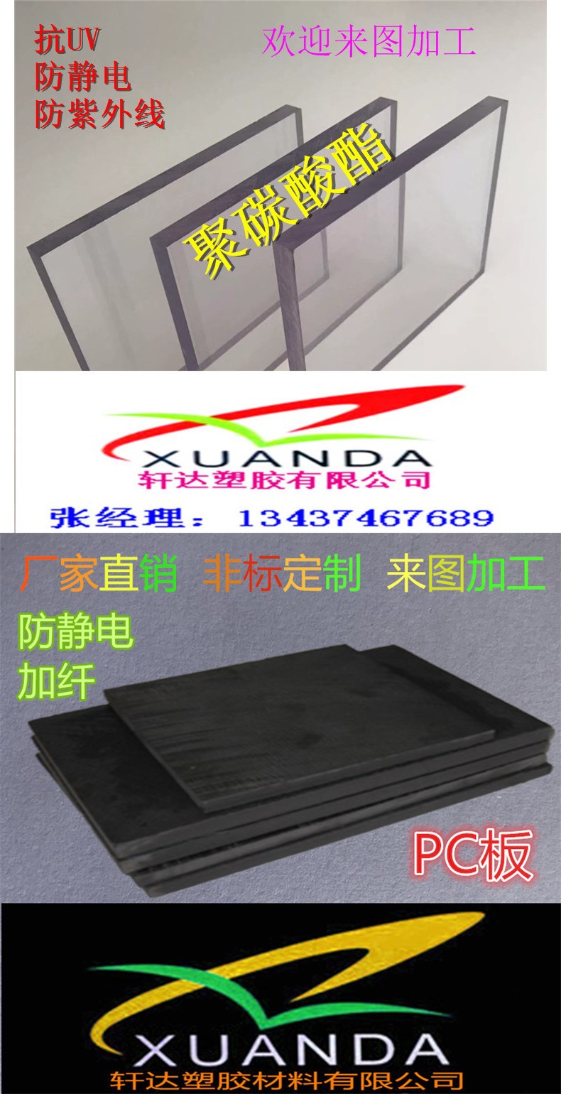 自産自売静電防止pc板黒色加繊維ポリカーボネート板難燃透明紫外線防止pc板