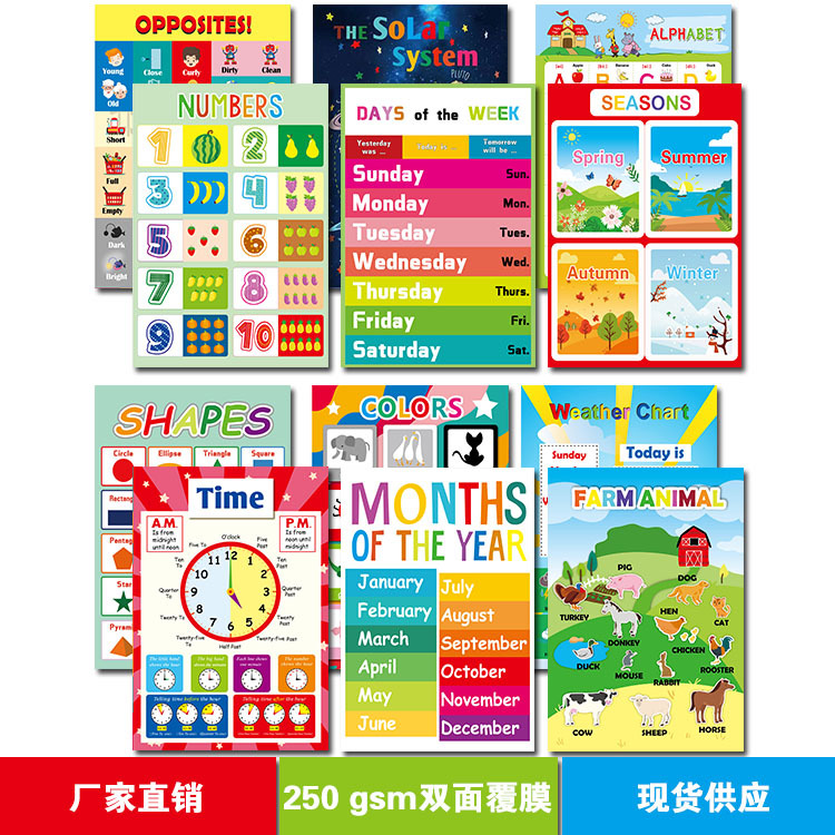新商品子供越境ポスター新作掛け図ポスター越境早教アニメ装飾画英語学習掛け図系
