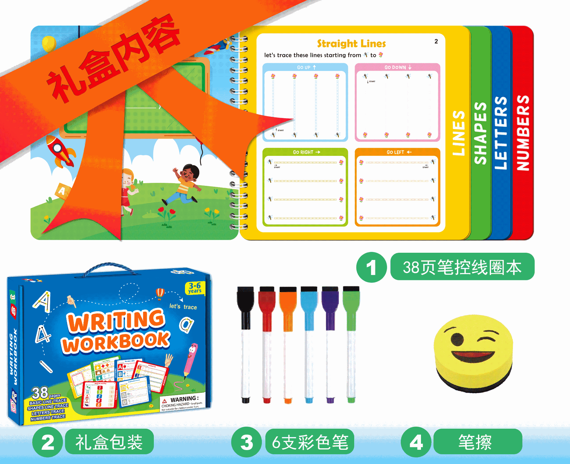 クロスボーダー早教学前筆触練習本礼箱字母筆控練習本控筆訓練tracing book
