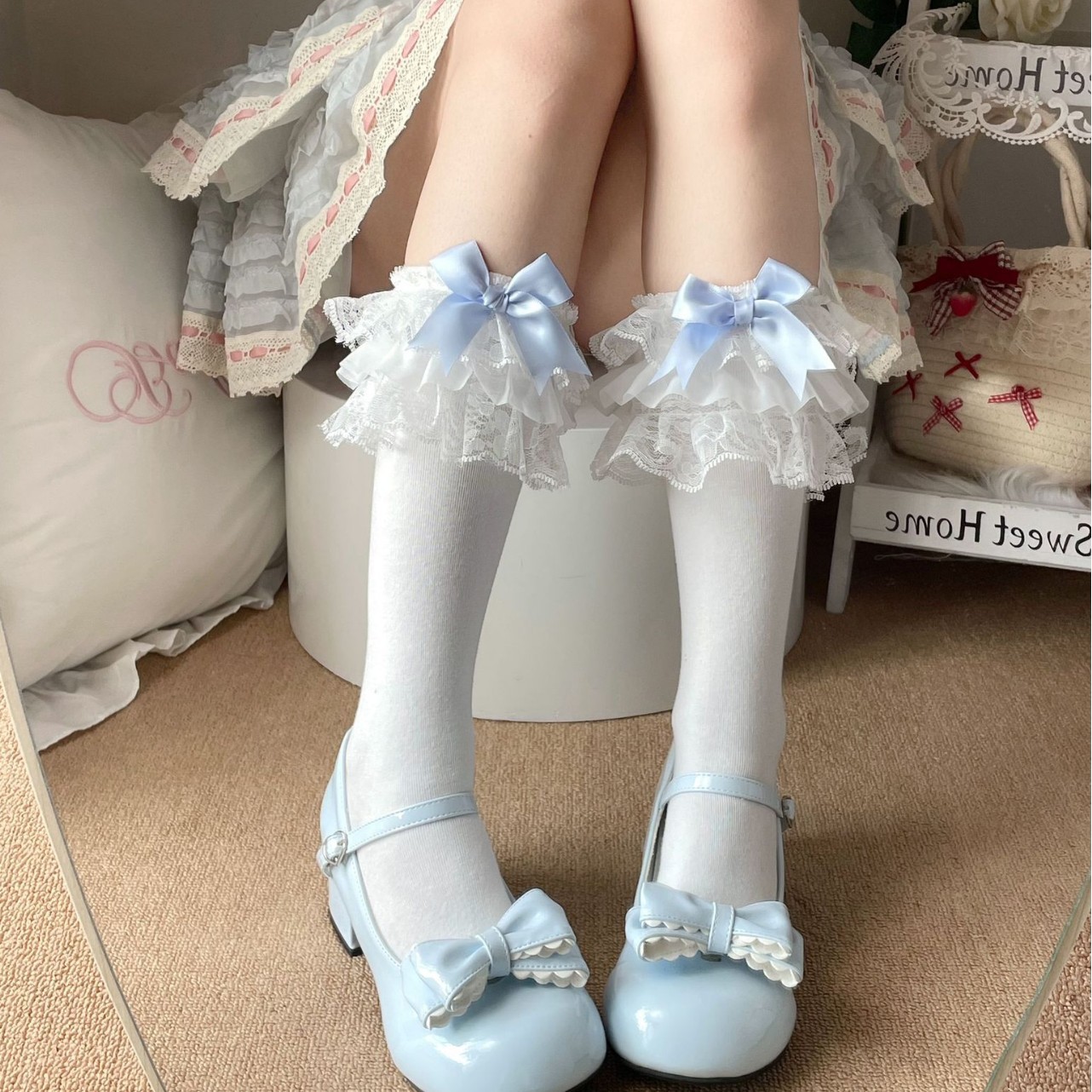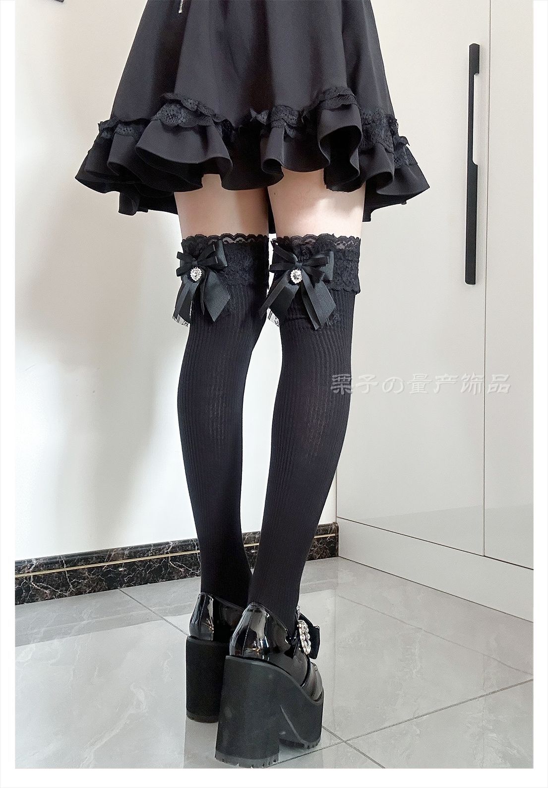 クロスボーダーロリータソックス、多層レース、大きなリボン付きオーバーニーソックス、可愛い女の子向け、日本風JKソックス