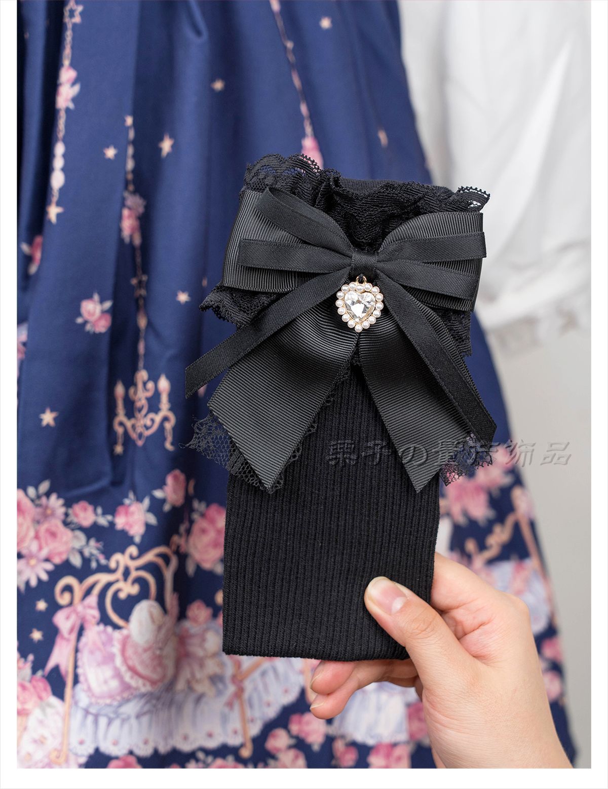 日系jk少女量産型角ドリル宝石蝶ネクタイレース靴下白黒かわいいLolita
