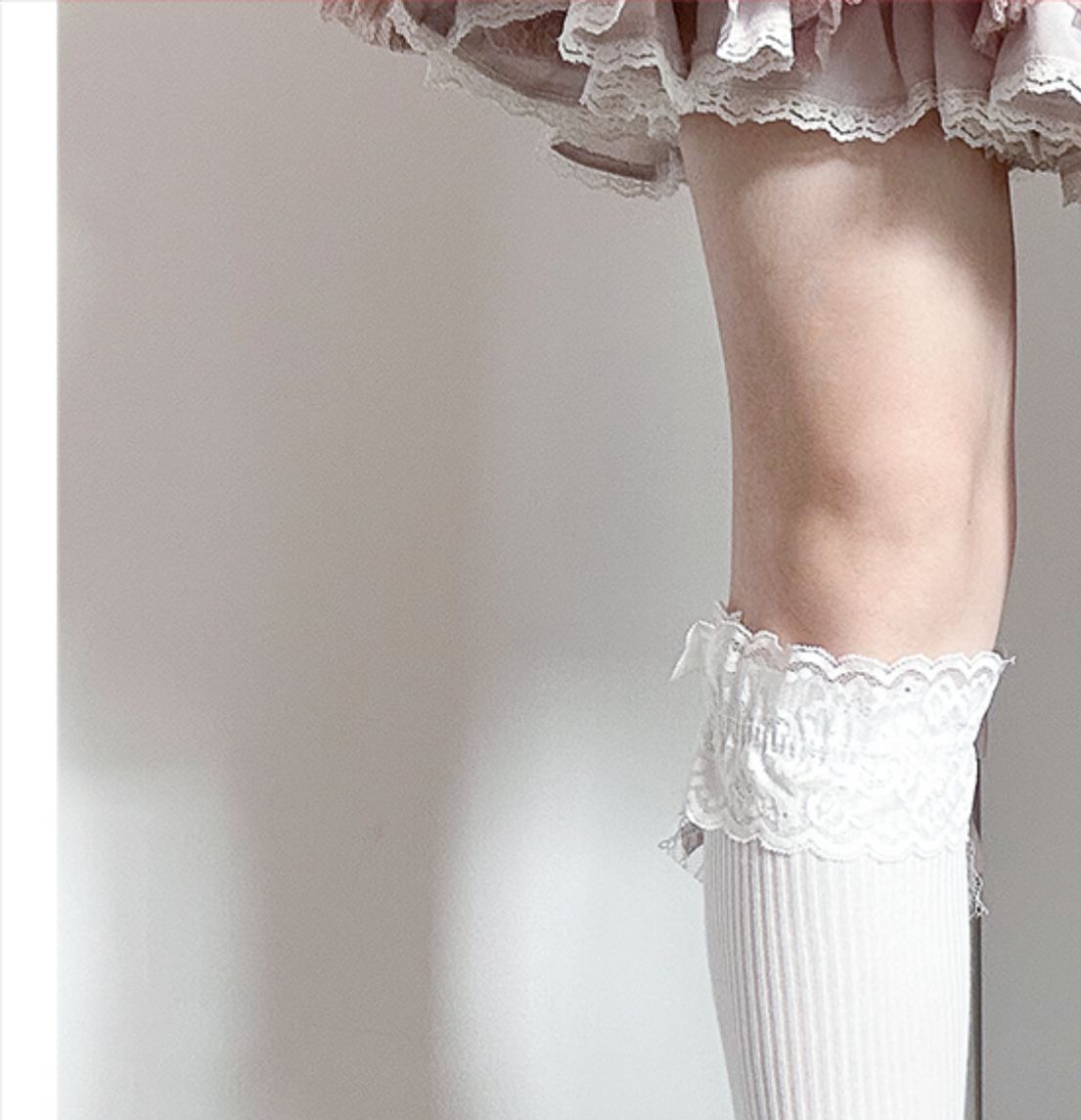 Lolitaロリータ靴下レースソックス白ストッキングふくらはぎソックスミドルソックスlo靴下レディースストッキング