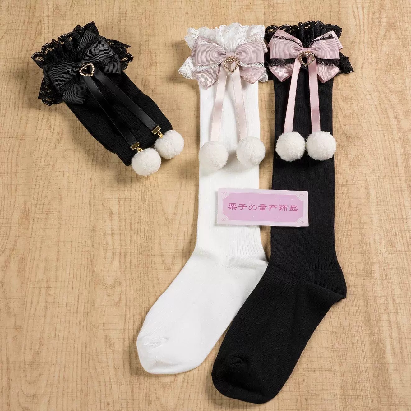 天蕾系量产型长筒毛球蝴蝶结中筒袜子洛丽塔过膝袜花边袜子jk少女