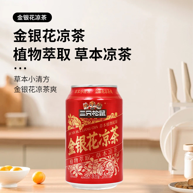 一件代发三只松鼠金银花凉茶310ml饮料植物萃取草本凉茶0卡包邮