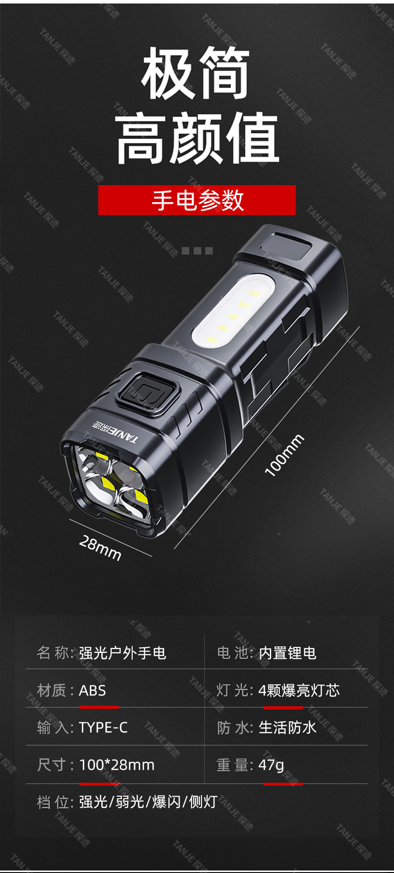 震え音熱売三眼小怪獣強光懐中電灯超亮携帯多機能磁石充電家庭用屋外