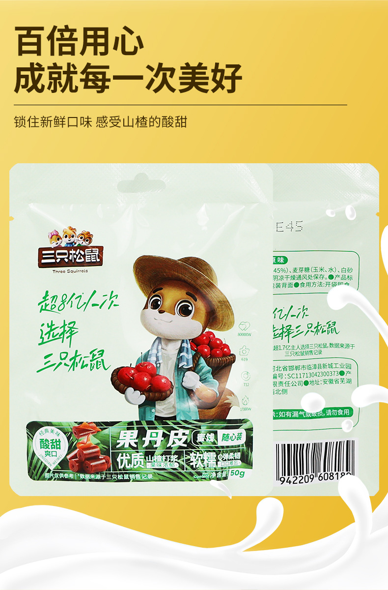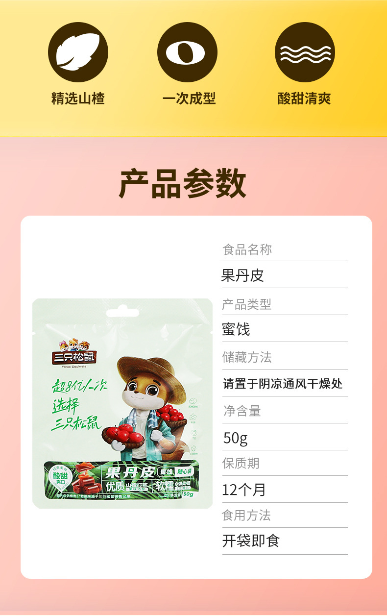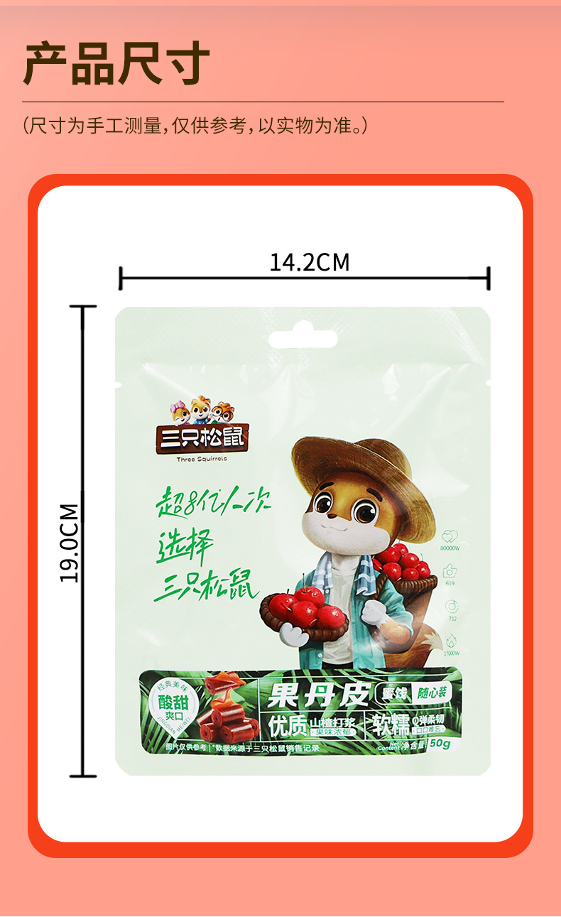 リスの果丹皮50g/袋入りサンザシ巻き独立小包装インスタントスナック郵便