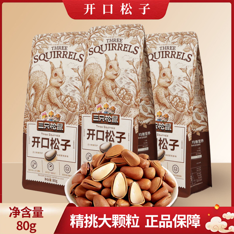 一件代发三只松鼠开口松子80g/袋原味坚果手剥东北特产松子包邮