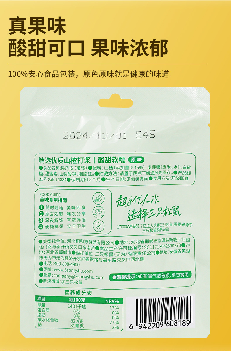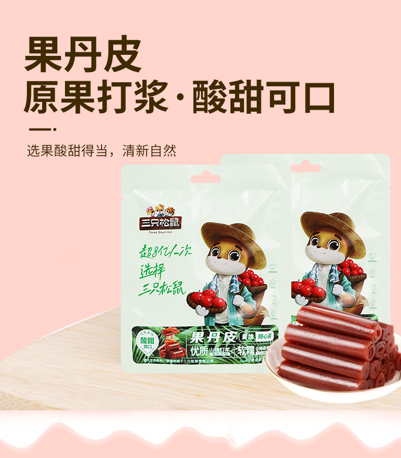 3匹のリス巻き果丹皮208g/袋サンザシ巻き独立小包装間食包郵便