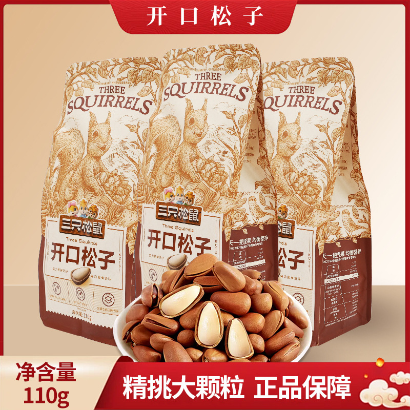 一件代发三只松鼠原味开口松子110g休闲零食每日坚果炒货干果包邮