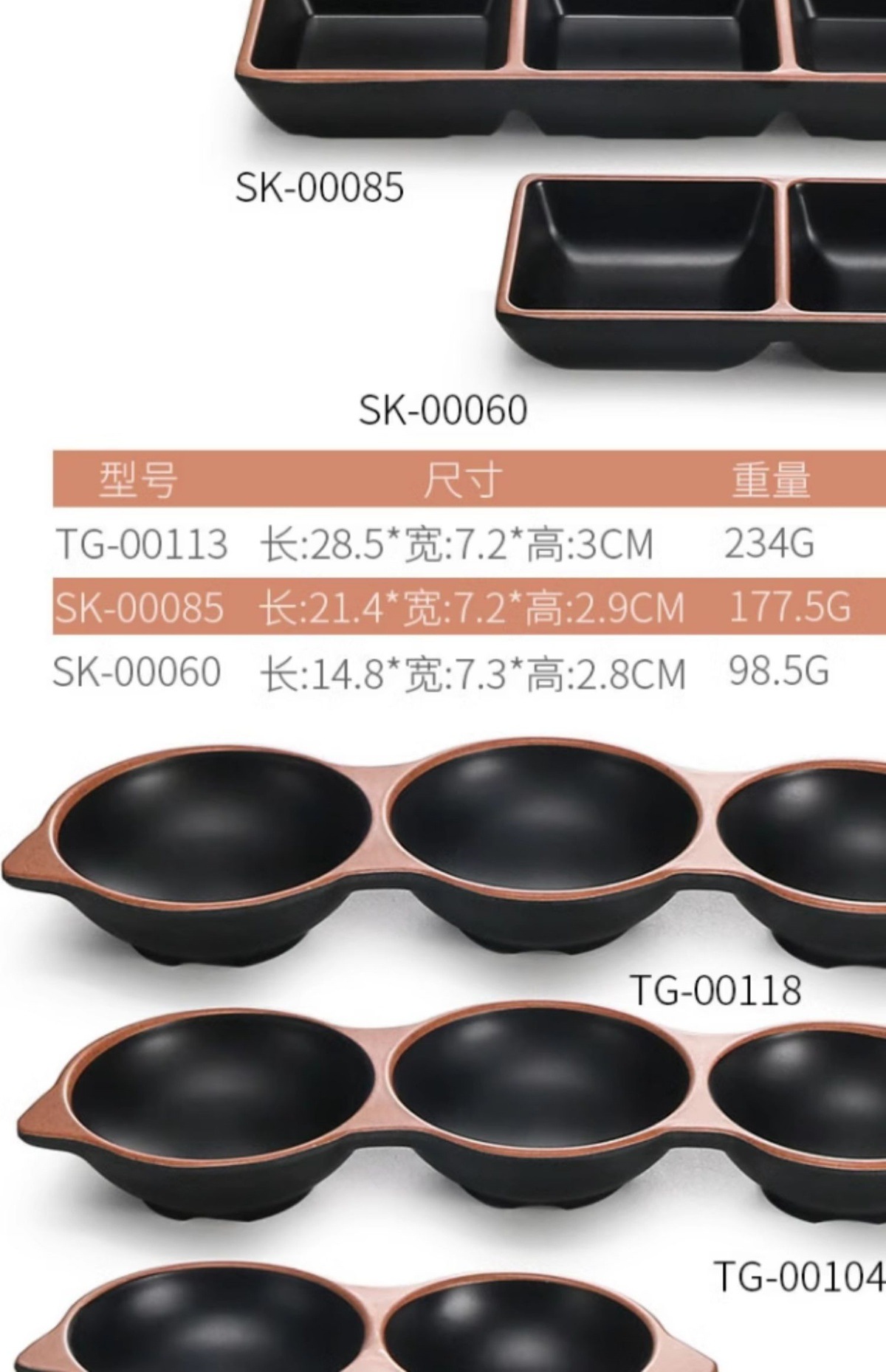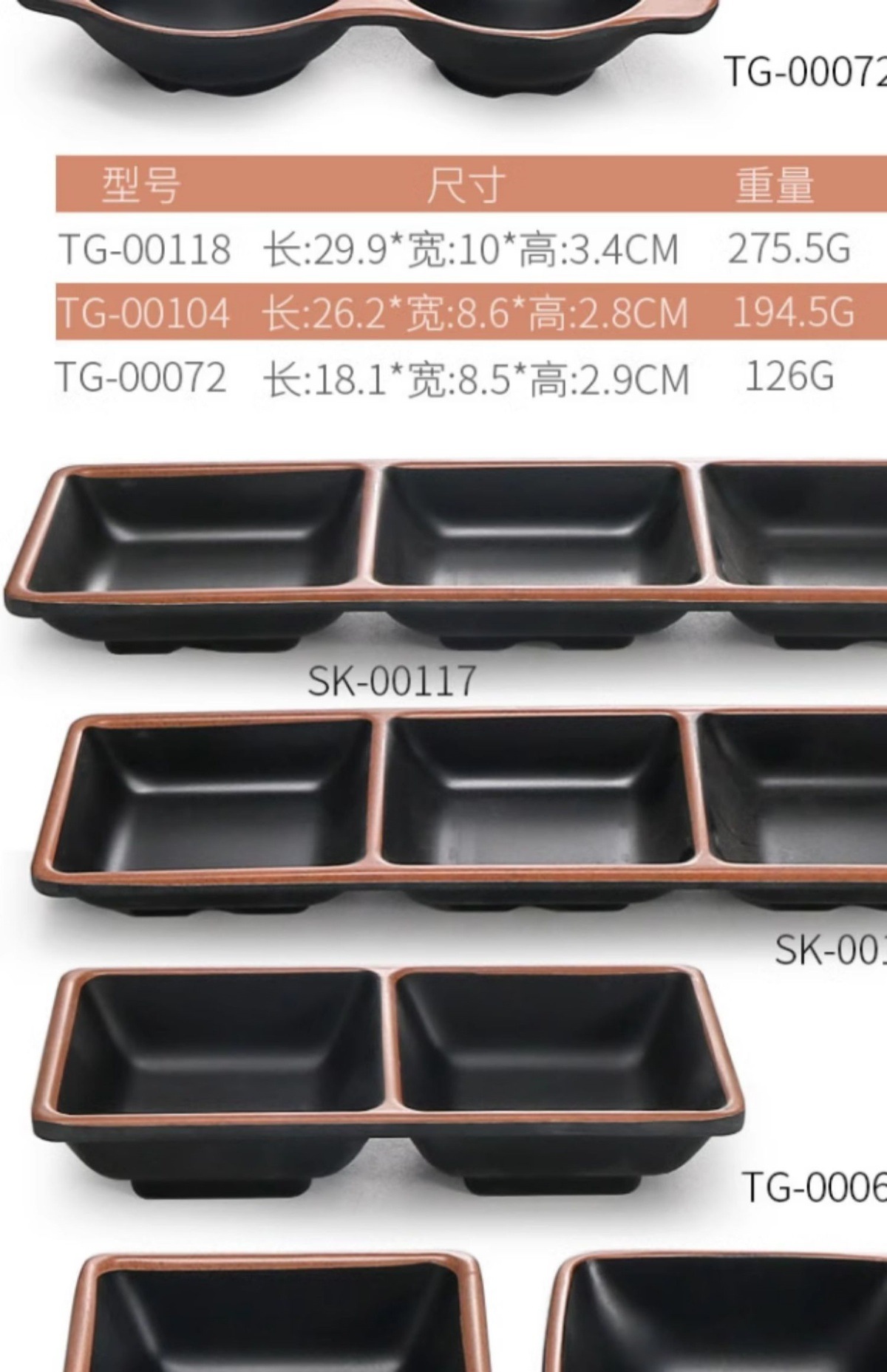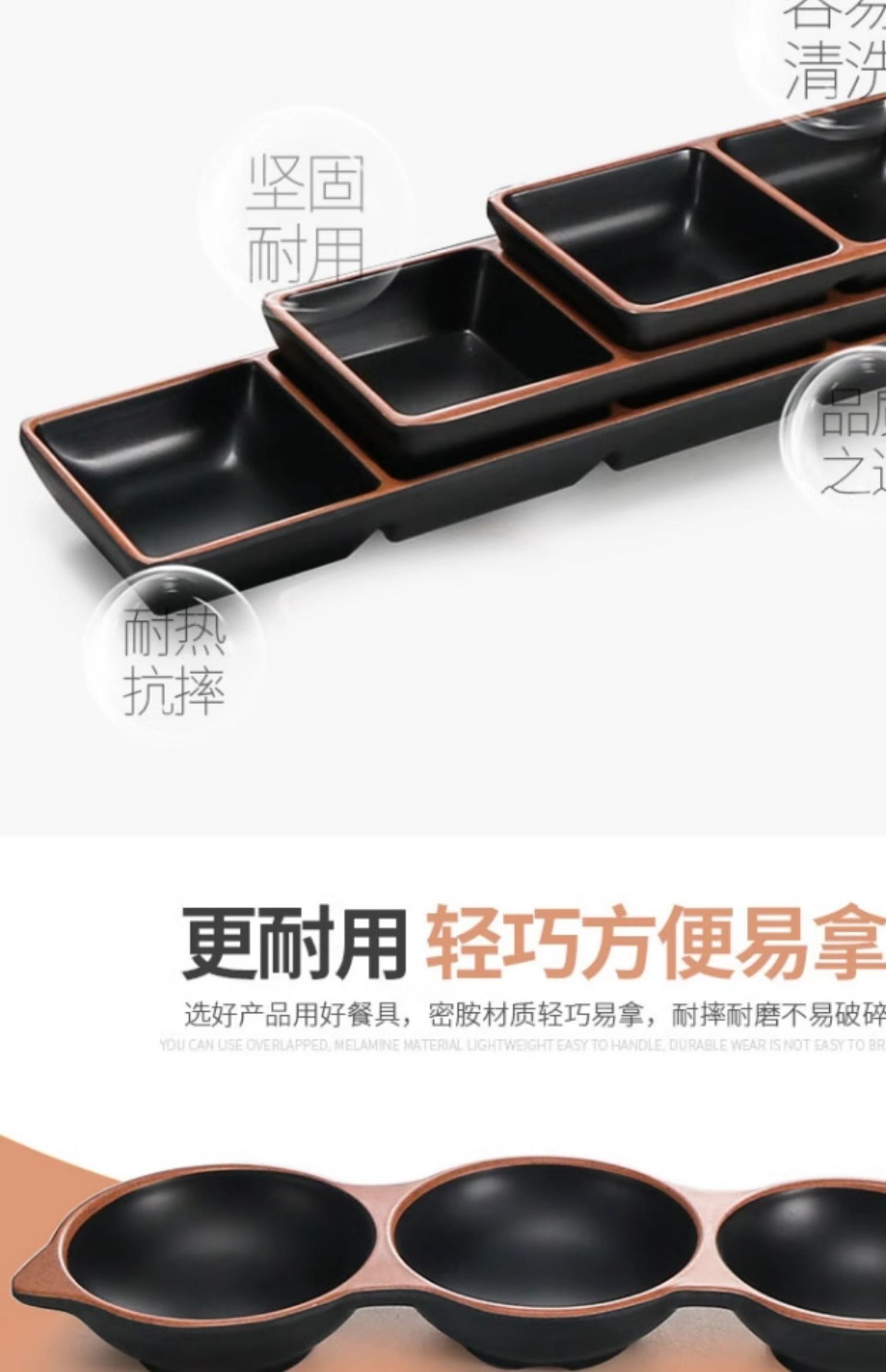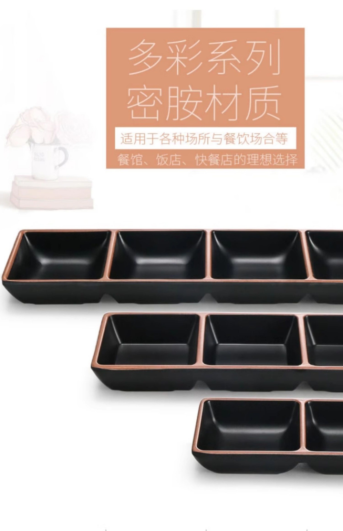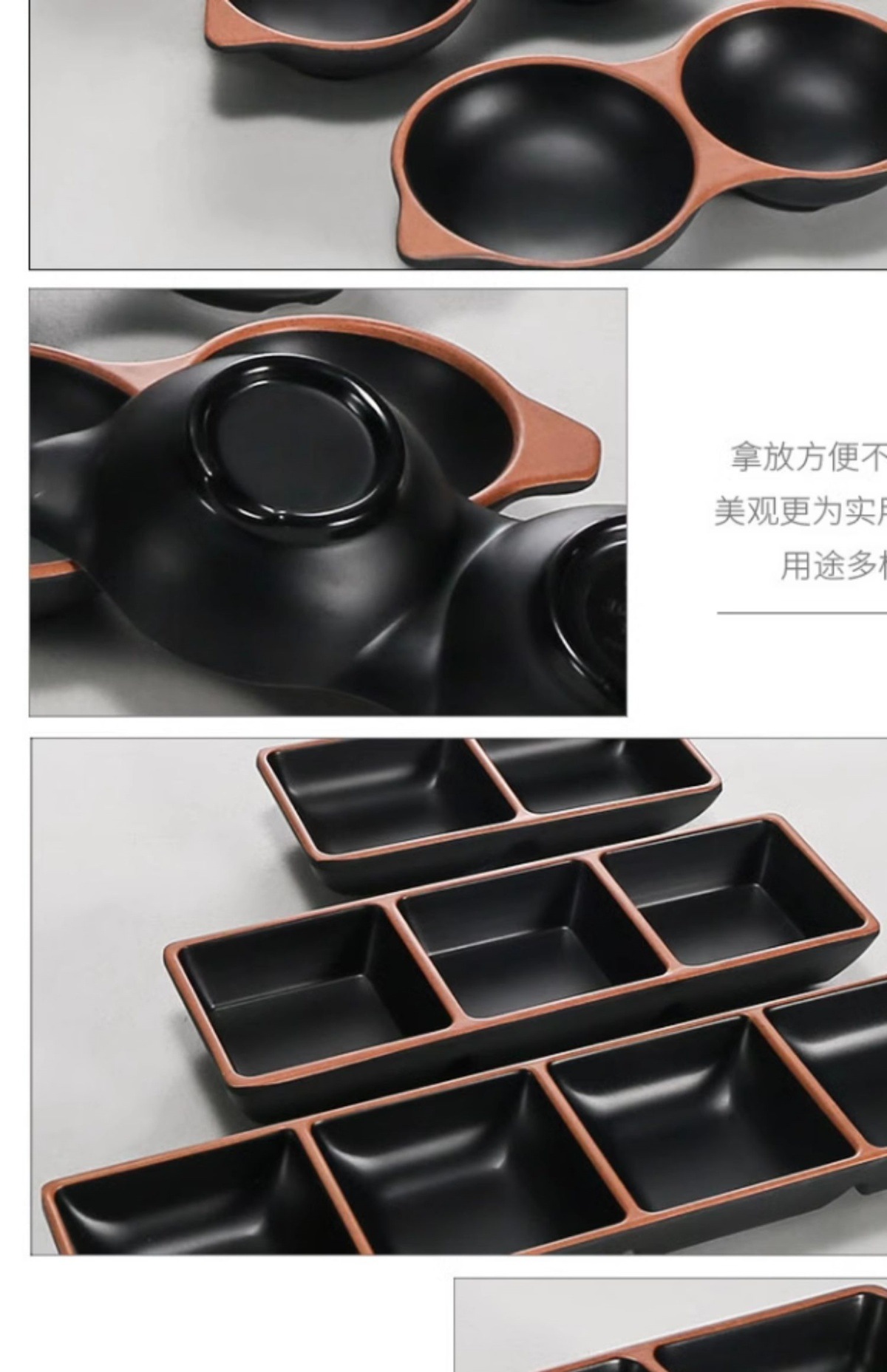 A5黒系円花すき焼きの調味料皿創意多分格角皿ホテル食器業務用