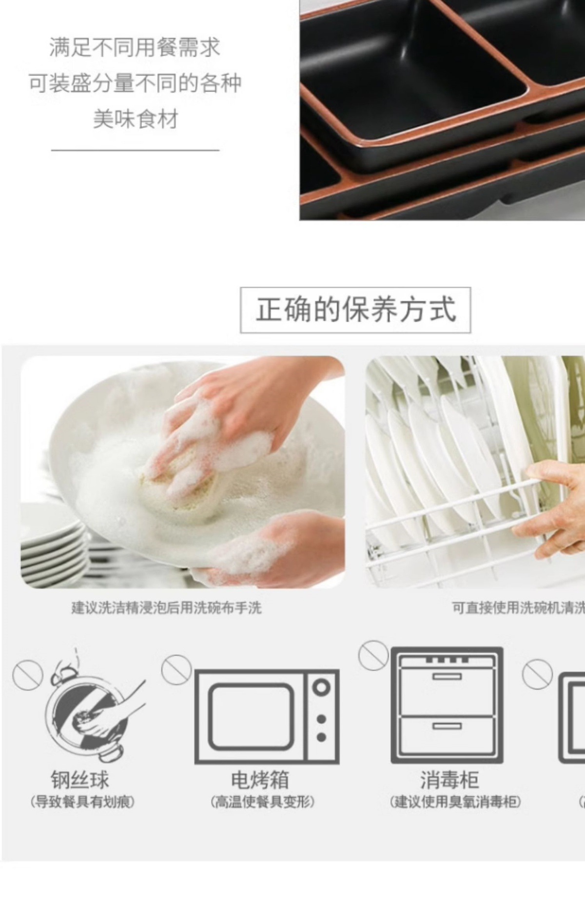長方形ファーストフードプレート、業務用分割プレート、学校食堂レストランファーストフード6分割プレート、4分割、5分割ライスプレート