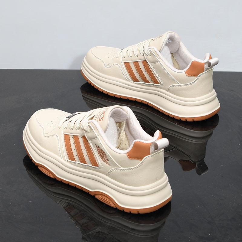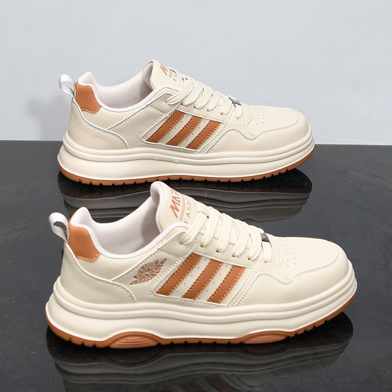 男性の靴の春の通気性はカジュアルな革の板の靴の青少年の運動の厚い底を合わせて高くなります。