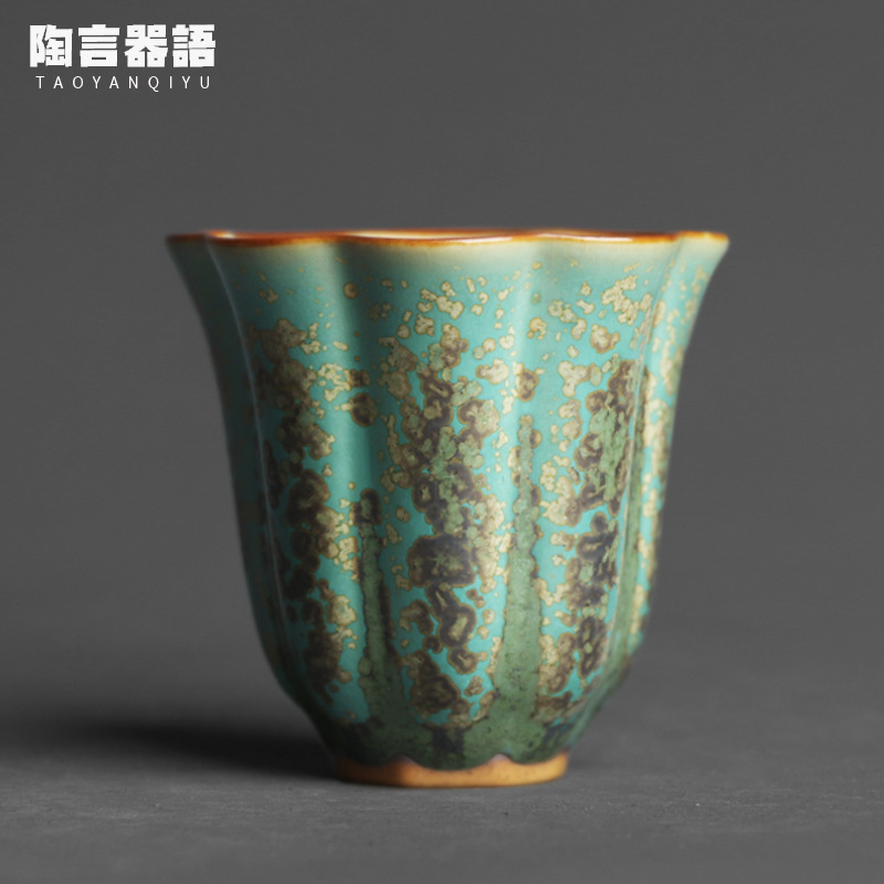 禹州緑鈞花弁主人杯手作り陶磁器原鉱油滴天目陶土個性工夫品茗単杯