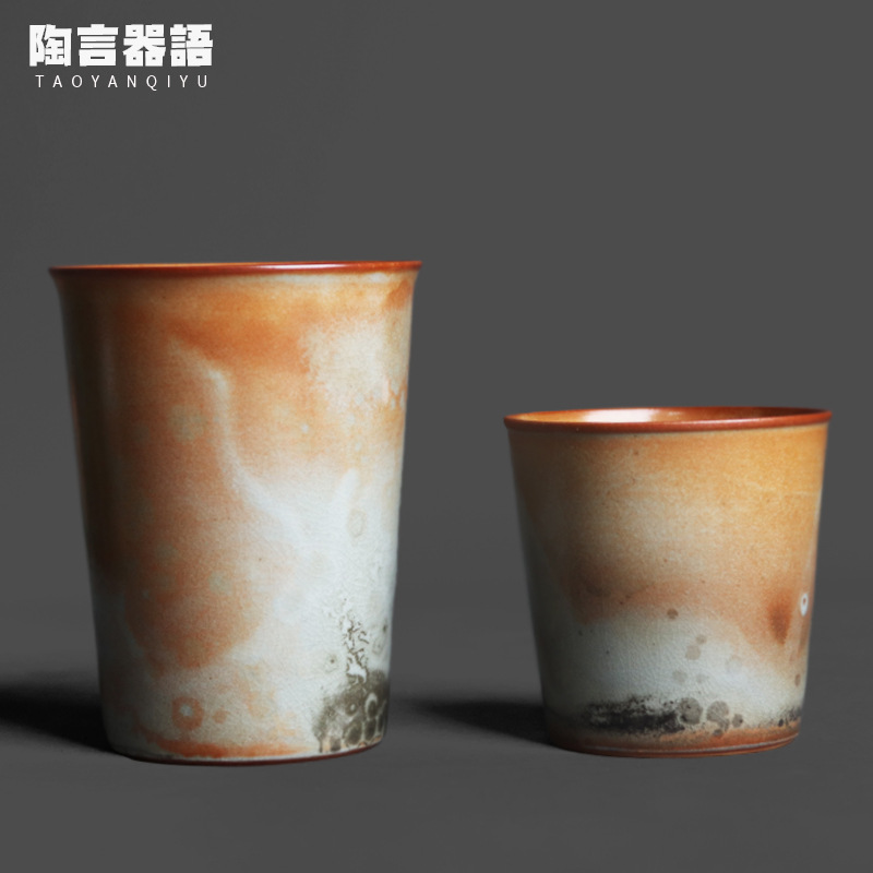 長石志野柴焼レトロ粗陶直口マークカップ在宅オフィスコーヒー牛乳コーラカップ