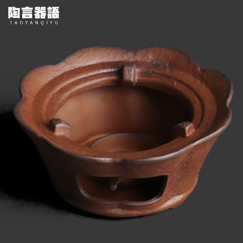 复古粗陶老岩泥瓣形蜡烛温茶炉中式功夫茶道配件烤茶焙茶炉底座