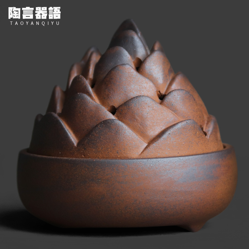 復古粗陶老岩泥山脈盤香炉中国式禅意茶道博古架茶卓置物創意香薫炉