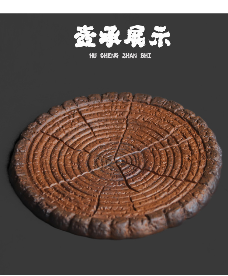 レトロ粗陶老岩泥円形杭壺クッション中国式禅意カンフー茶道単層小サイズ壺承トレー