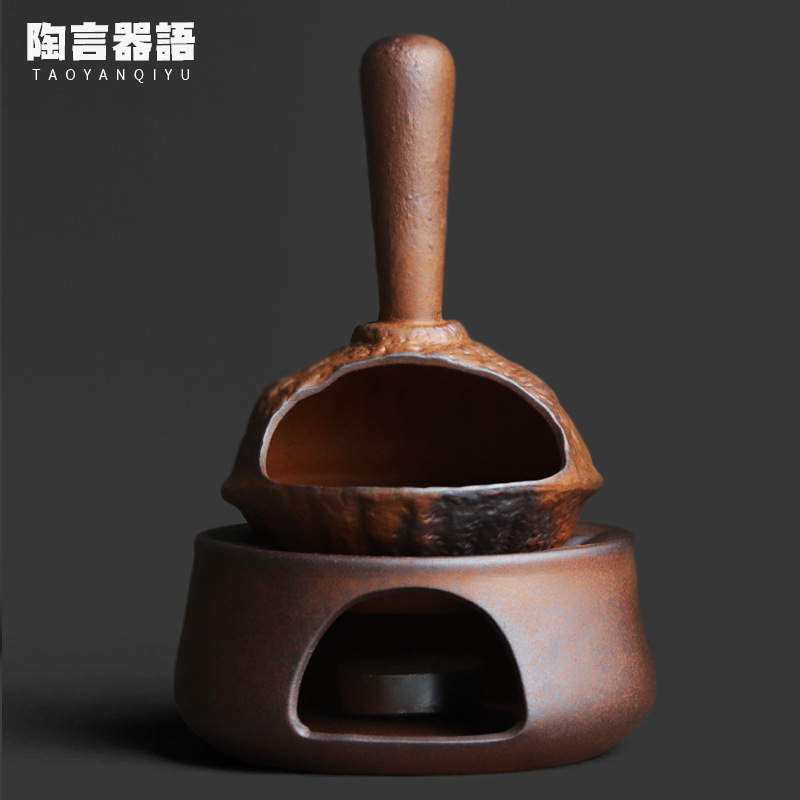 复古粗陶老岩泥蜡烛树叶烤茶器功夫茶道配件茶叶提香器小号焙茶器