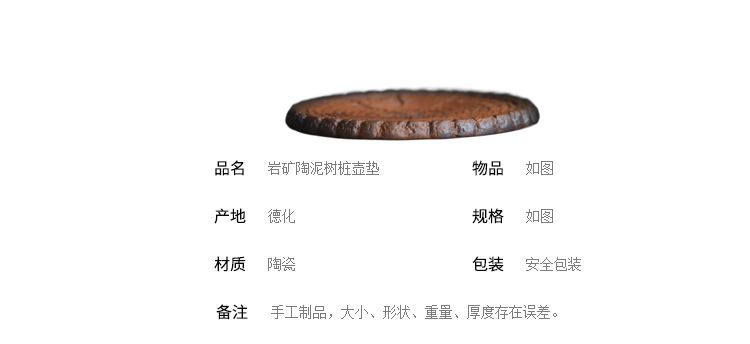 仕様 岩鉱物粘土木の切り株鍋つかみ(直径13cm、高さ1cm)