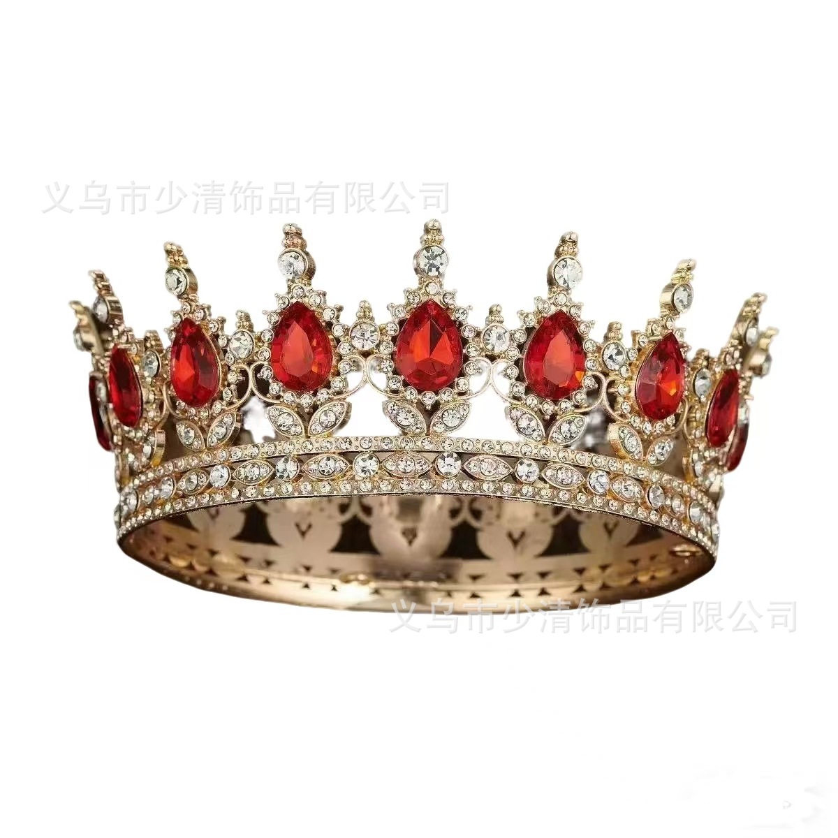 复古式跨境合金圆形镶水晶女王大皇冠礼服成人礼公主新娘头饰配饰