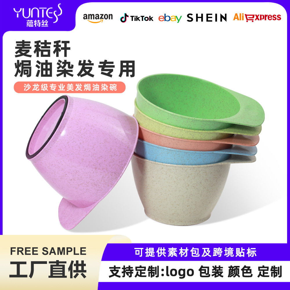 彩色麦秸秆染发碗染发工具防滑美发焗油碗理发店发膜碗批发调色碗