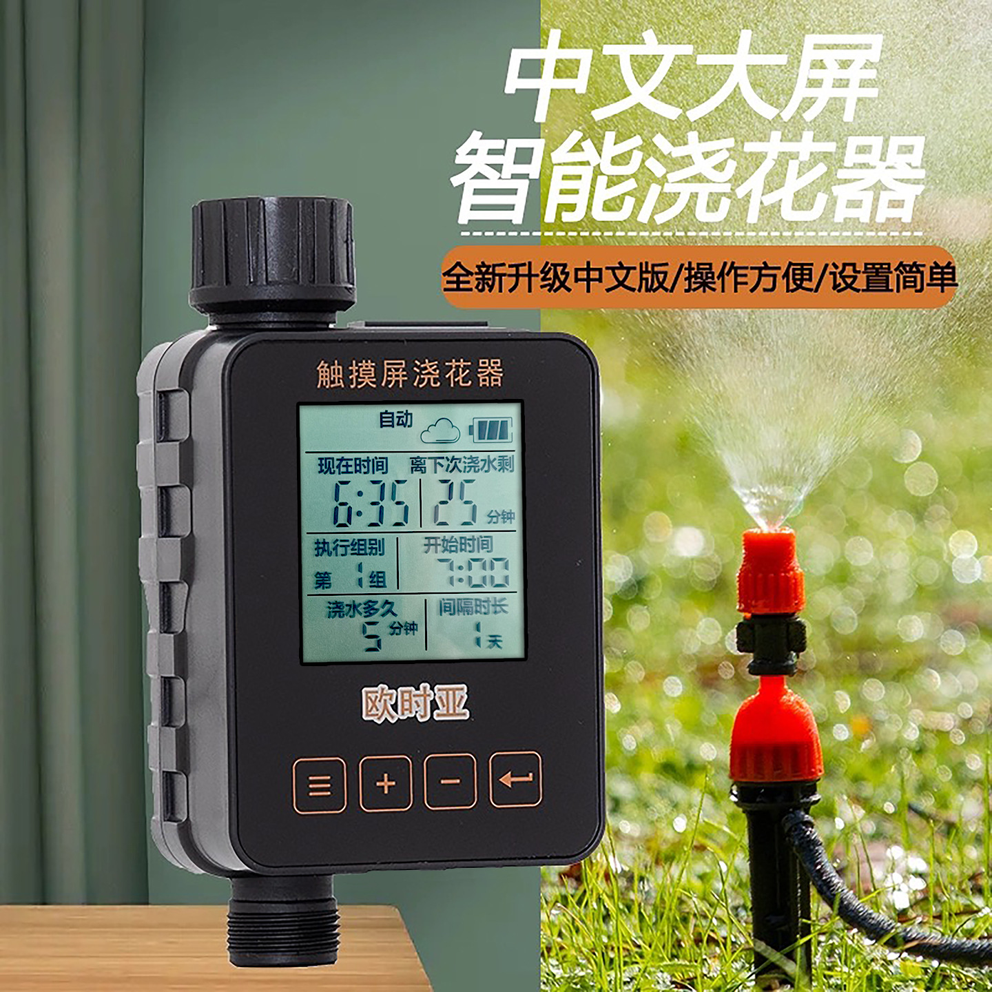 长续航大屏幕雨水感应定时自动浇花器定时浇水器喷淋喷雾灌溉系统