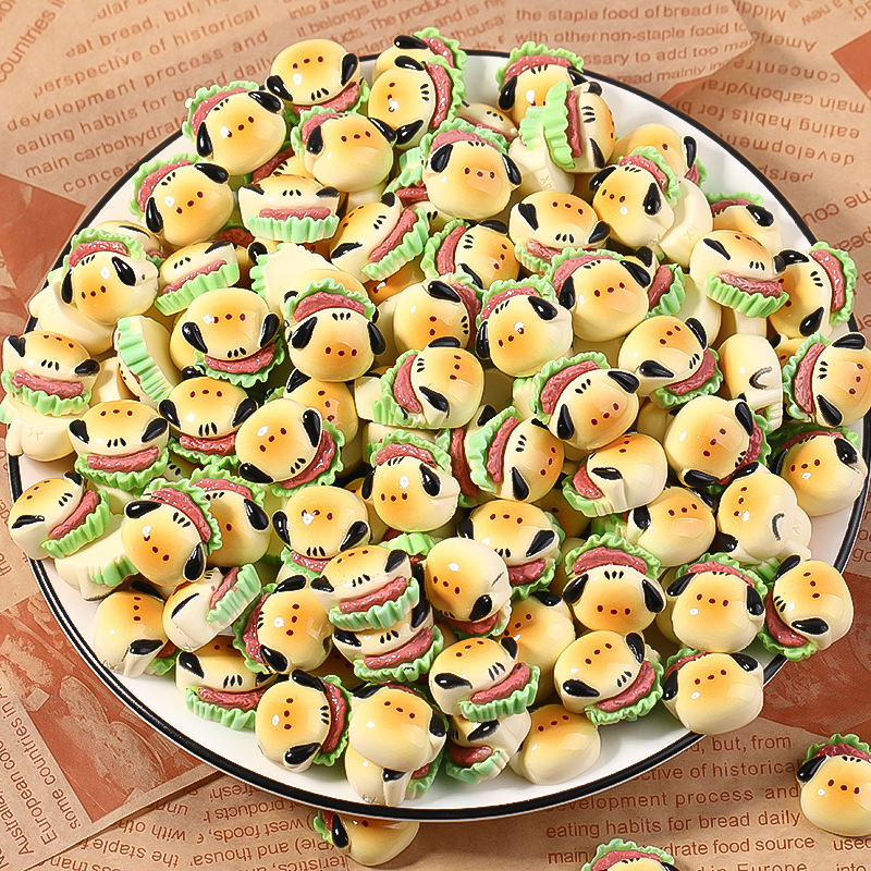 Diyアクセサリーの樹脂の漫画はハンバーガーの子犬のクリームの携帯のケースの冷蔵庫を遊んでキーホルダーのペンダントを貼ります。