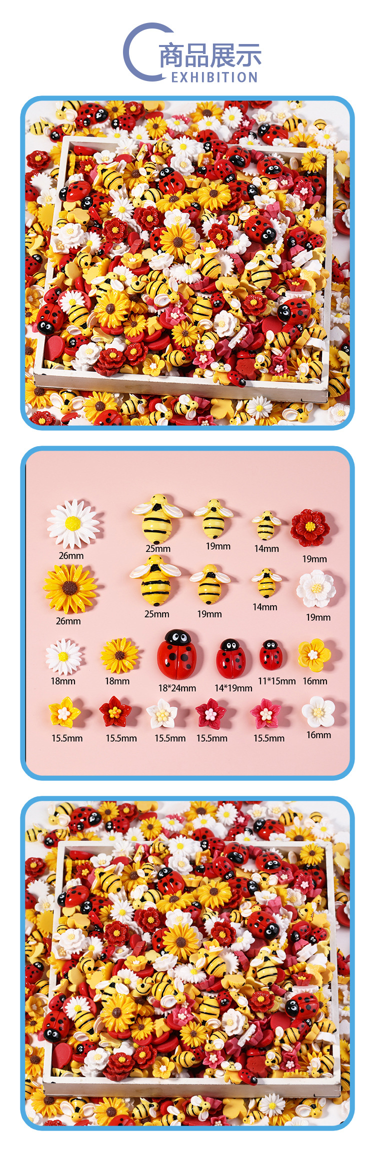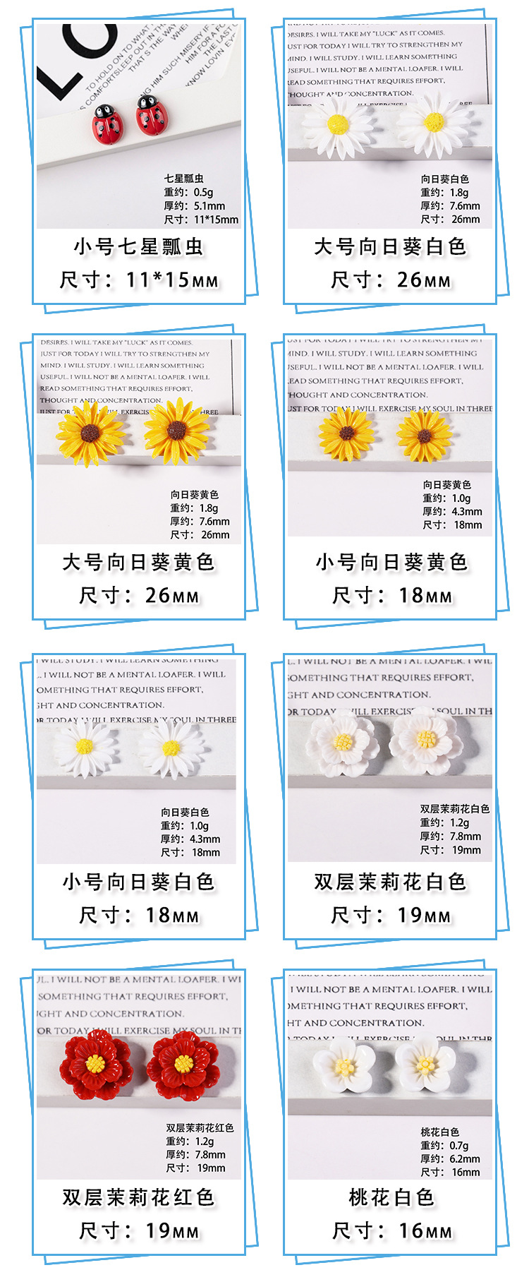 25mm ビーオレンジ,19mm ビーオレンジ,14mm ビーオレンジ,25mm ビーレモンイエロー,19mm ビーレモンイエロー,14mm ビーレモンイエロー,18*24mm ななつ星てんとう虫,14*19mm 七つ星てんとう虫,11*15mm 七つ星てんとう虫,26mm サンフラワーホワイト,18mm サンフラワーホワイト,26mm サンフラワーイエロー,18mm サンフラワーイエロー,小さな蘭の白,小さな蘭と大きな赤,小さな蘭の黄色,小さな蘭のバラの赤,二重層ジャスミンホワイト,二層ジャスミンレッド,ピーチブロッサムホワイト,ピーチブロッサムイエロー