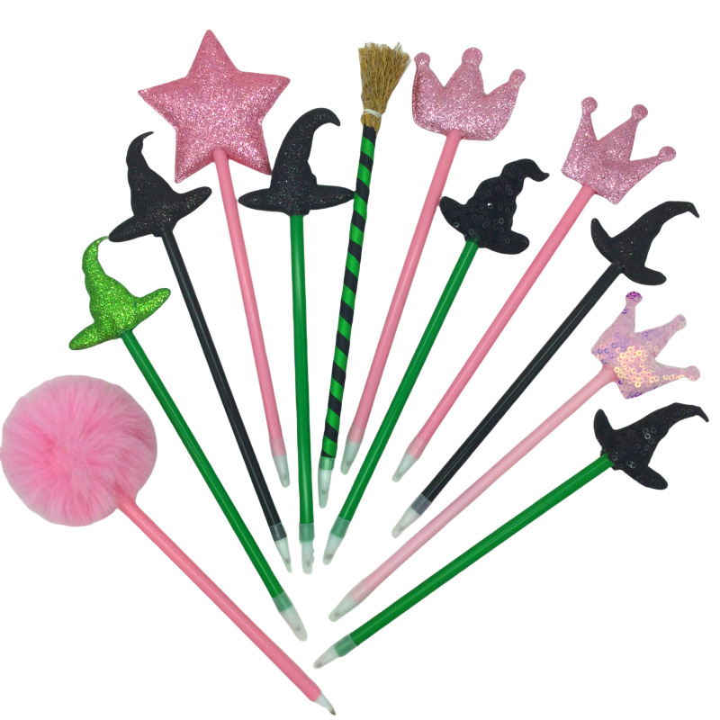 クロスボーダー新製品ハロウィンボールペン 8cm スターボールペンクリエイティブ魔女帽子ハロウィンほうきペン