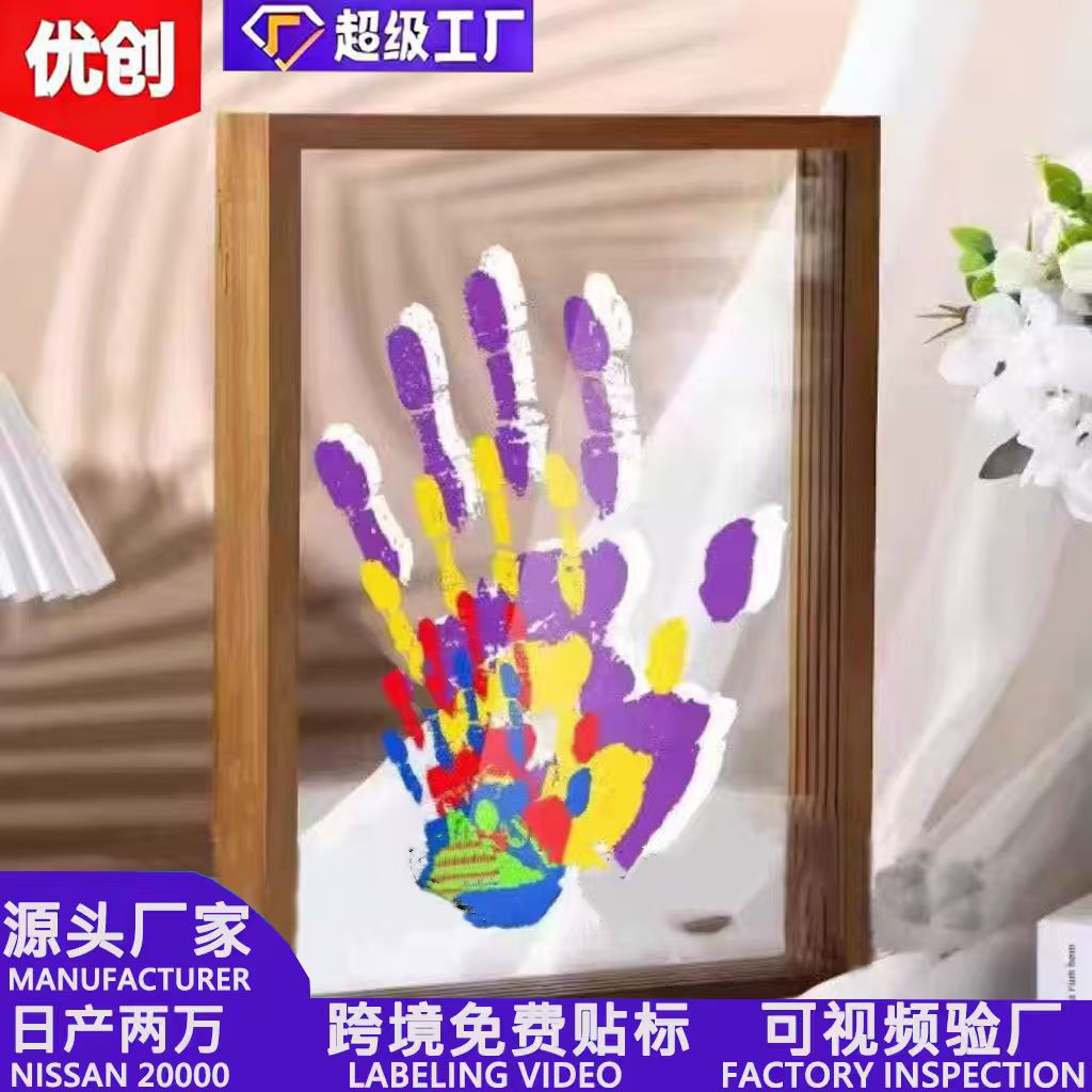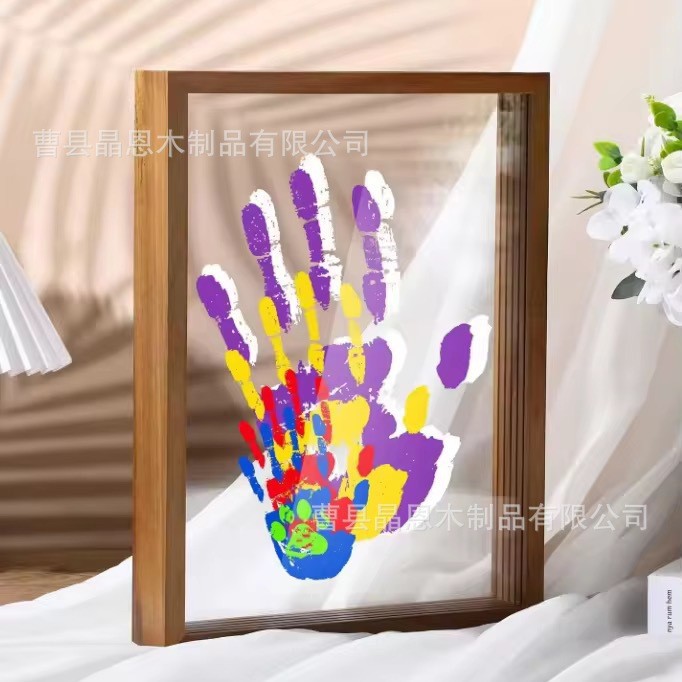クロスボーダー木製透明ハンドプリントフォトフレーム子供手作りDIY親子手描き絵の具記念フォトフレーム4層木製フォトフレーム