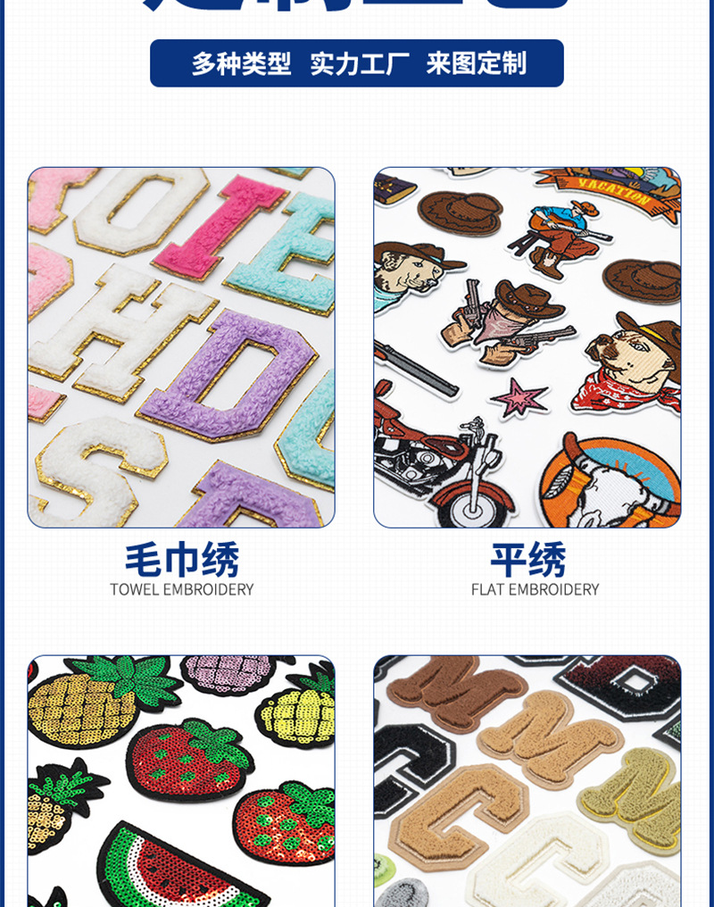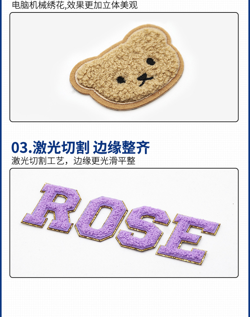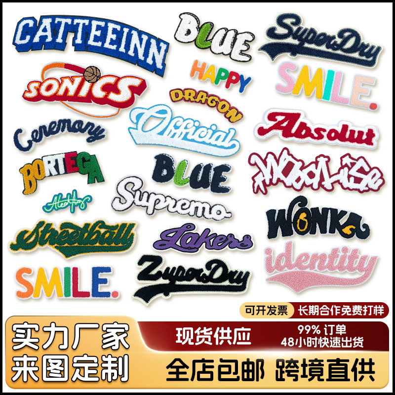 カスタム文字布ステッカー、粘着性のあるタオル刺繍、金縁シェニール素材、刺繍パッチ、越境専用刺繍ステッカー
