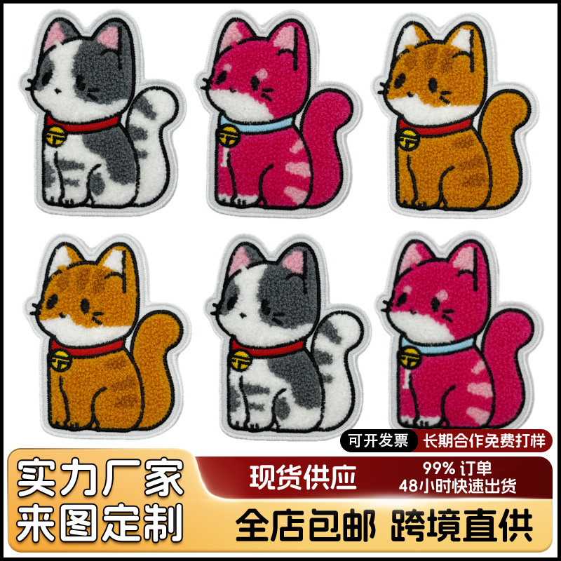 在庫あり、パーソナライズされたトレンディなブランドタオル刺繍子猫取り外し可能なベルクロ刺繍布ステッカー衣類アクセサリーパッチステッカー卸売
