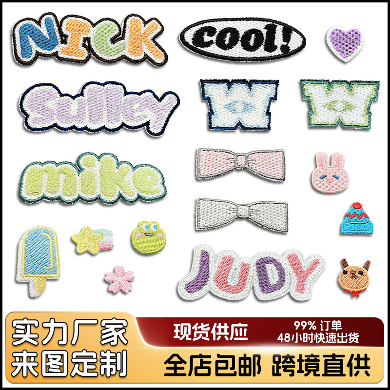 欧美风徽章布贴潮流鞋帽刺绣贴英文字母服装辅料熨烫背胶补丁贴