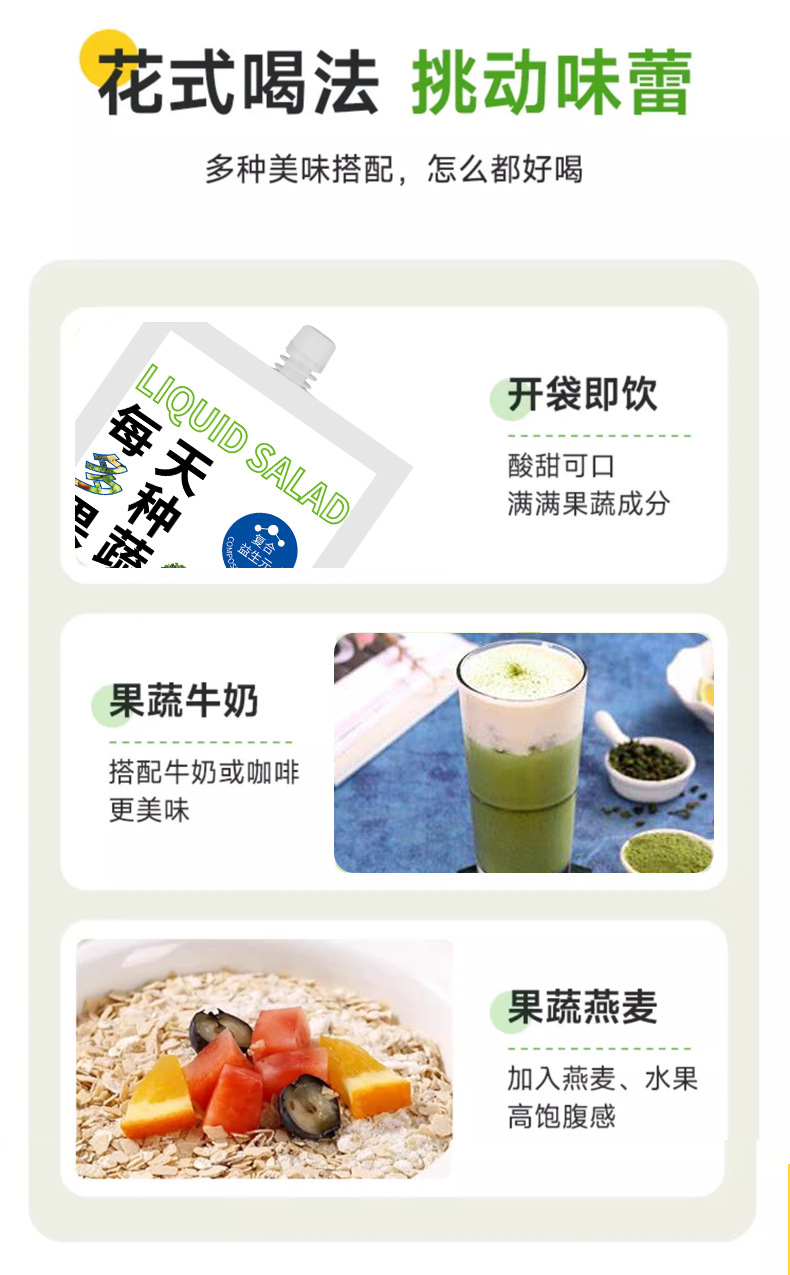 odm液体沙拉益生元果蔬汁混合果蔬饮品代餐沙拉吸嘴袋饮料代加工