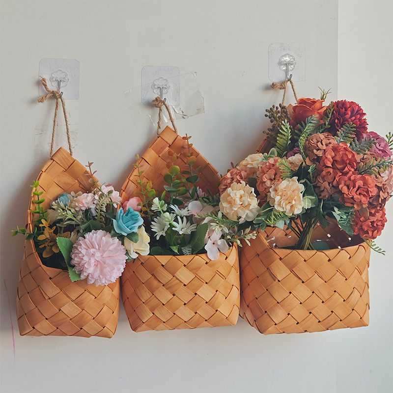 编织花篮挂墙壁挂式木质绿萝挂篮竹篮阳台绿植吊篮挂盆花盆批发