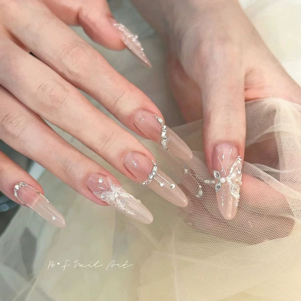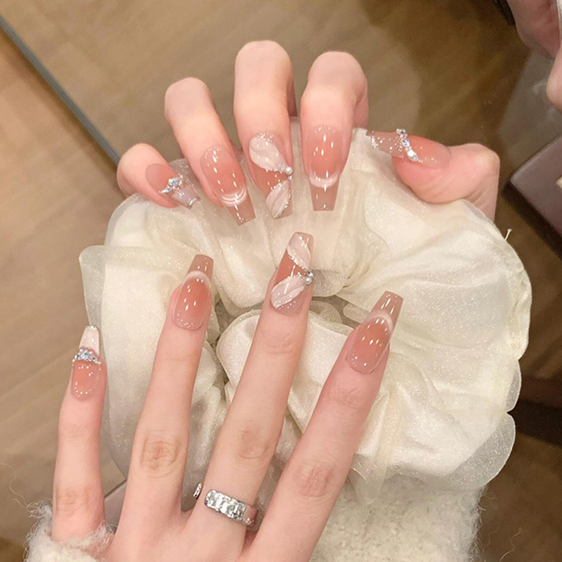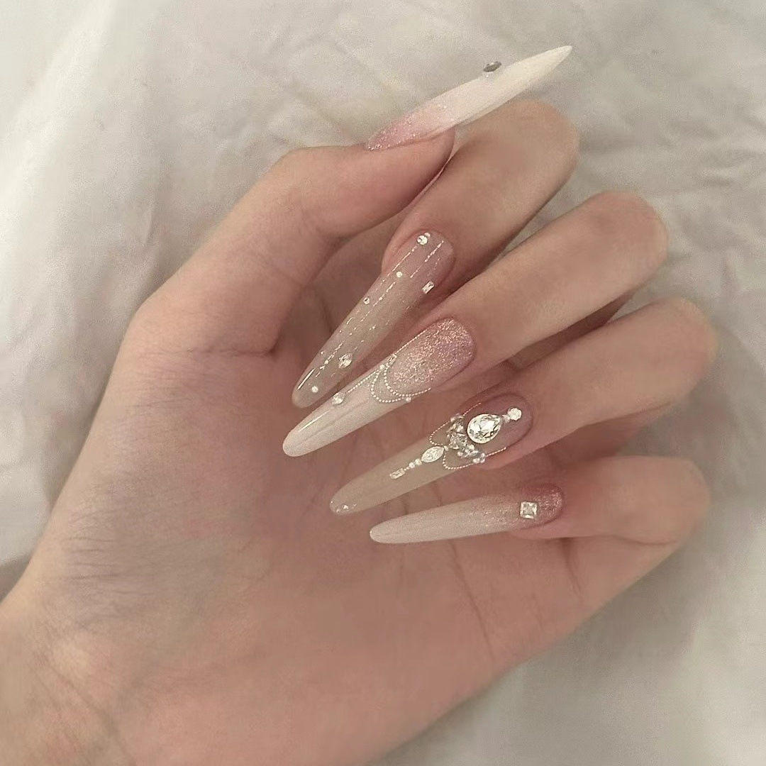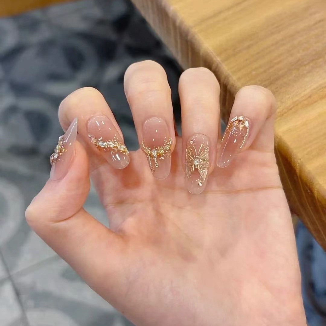 纯手工穿戴甲纯欲氛围感裸色碎钻爆闪婚礼美甲温柔气质显白美甲贴