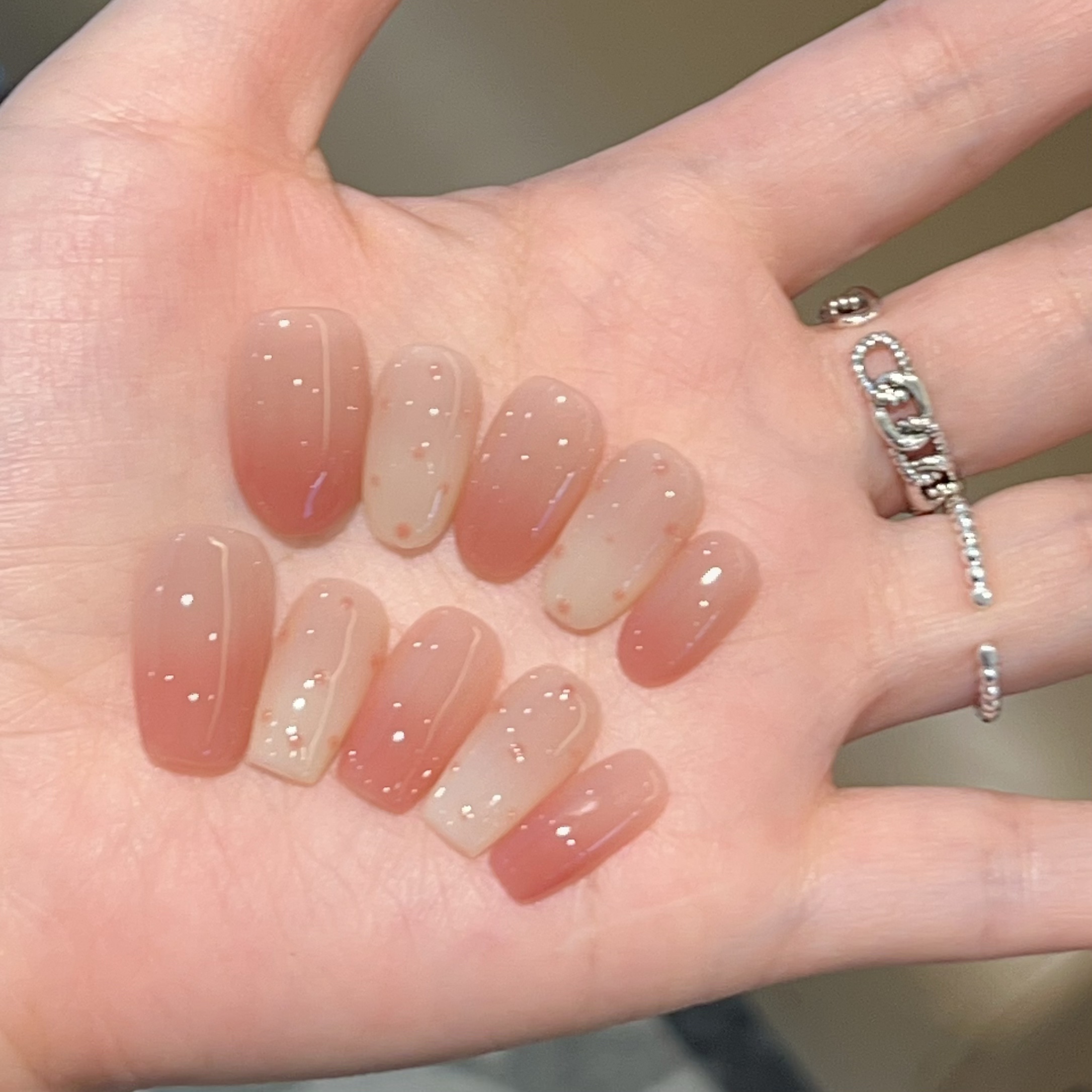 手工穿戴甲奶芙泡泡纯欲高级感渐变裸色树莓色波点显白可拆卸美甲