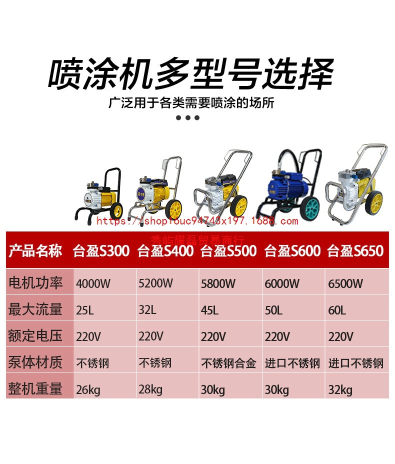 台盈S650高压无气喷涂机涂料油漆乳胶漆电动全自动多功能喷油漆机