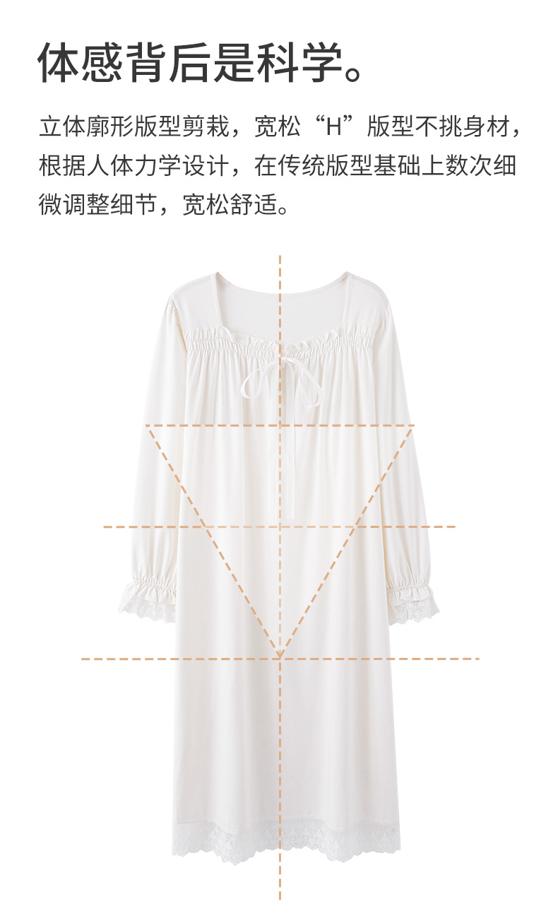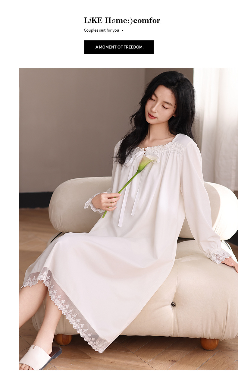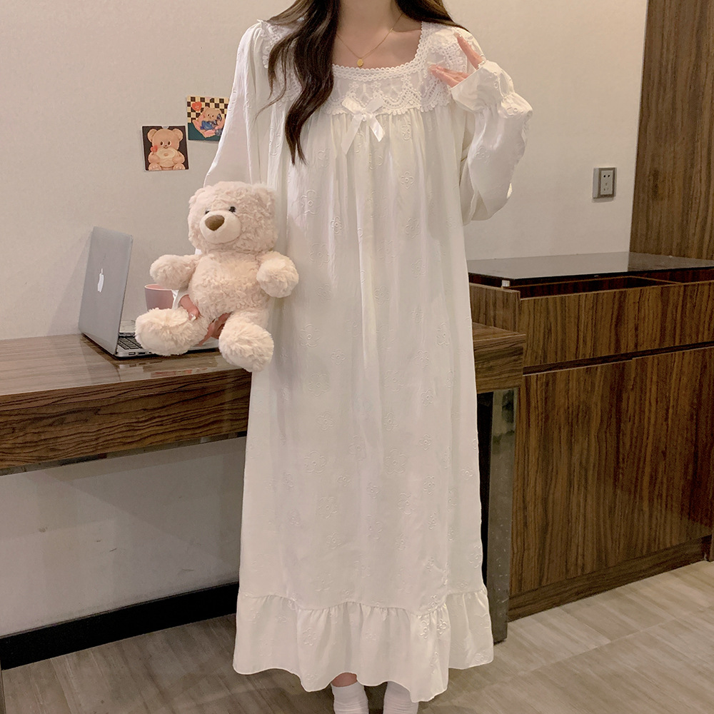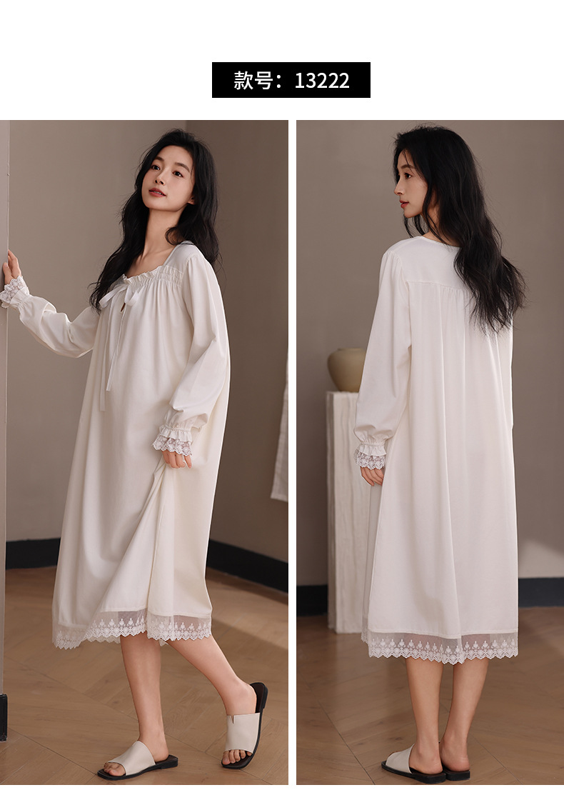 纯棉睡衣女长袖宫廷风睡裙春秋季新款女士V领长裙甜美宽松家居服