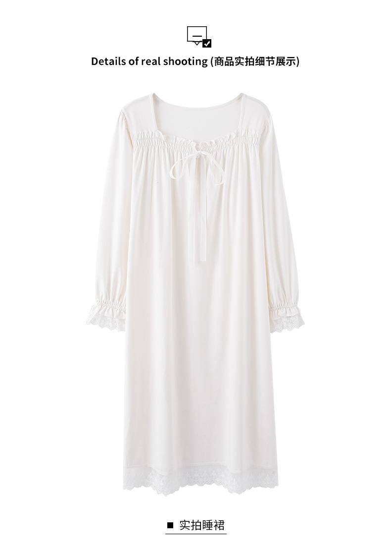 胸パッド付きの寝スカート女性秋の白いレース長袖プリンセス風ワンピースの大きいサイズの薄いタイプは家の服を着ることができます。