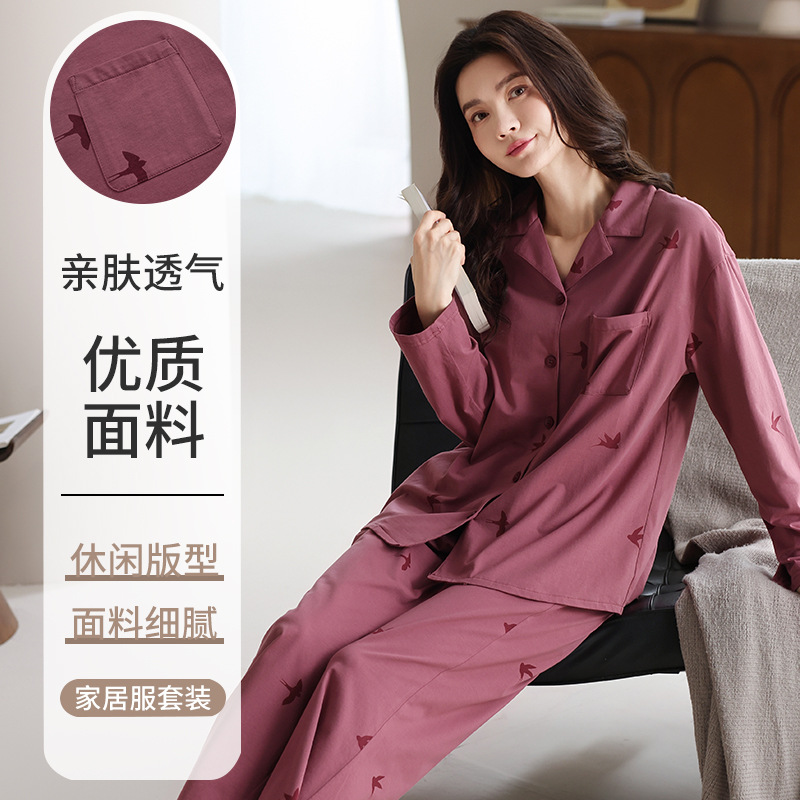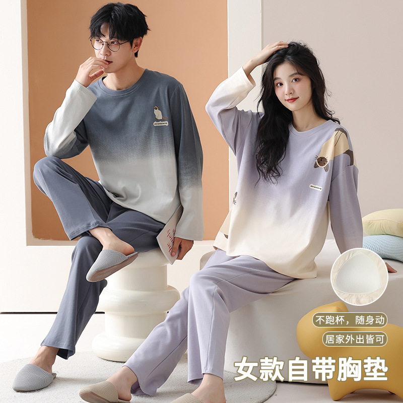 春と秋の純綿カップルパジャマ