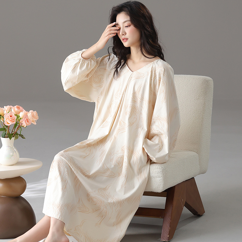 7A抑菌长袖纯棉睡裙女韩版新款大码高档全棉孕妇连衣裙长裙可外穿