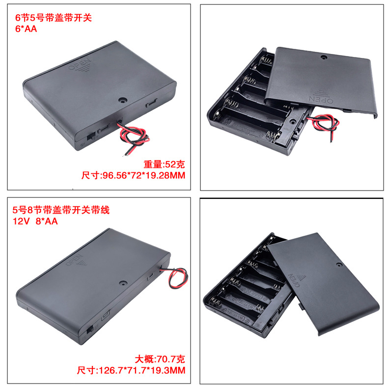 7番電池ケース1 2本3 4 6 8本5番蓋付きスイッチケーブル付き5番電池ケース1.5v1256v