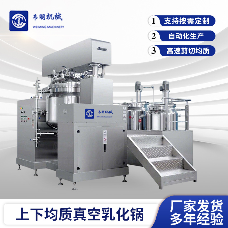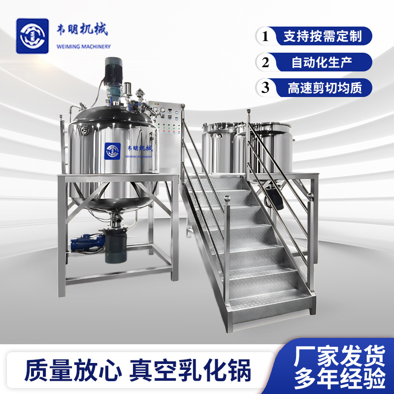 ステンレス真空乳化釜 高粘度乳液スクレーパー 撹拌 高剪断分散 均質化 油圧可変周波数昇降