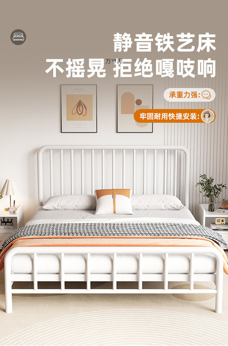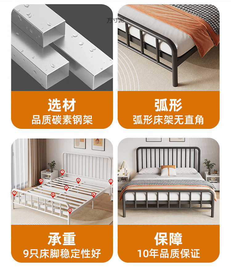 北欧鉄製ベッド現代シンプルシングルベッド1.5mツイン1.8メートル児童鉄製ベッド賃貸住宅1メートル経済的