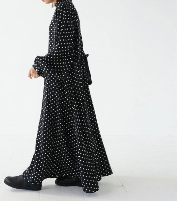 国境を越えた貿易日本の春の新しいスタイルの女性のスタンドアップカラーポルカドットフェイスステッチルーズ長袖シャツドレスドット
