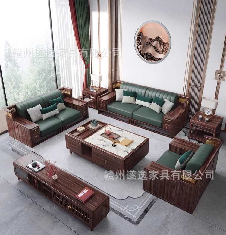 中国式胡桃木客間全実木ソファー冬夏両用大小戸型現代シンプル木製貯蔵家具