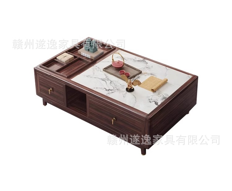 新中国式軽豪華高級烏金木実木茶何組み合わせ客間岩板床置き棚貯蔵物茶何卓家具