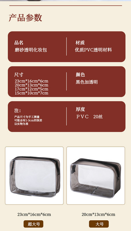 透明化粧ポーチ、洗面用具収納バッグ、携帯用収納バッグ、化粧品包装袋、ロゴ印刷可能、在庫あり、卸売